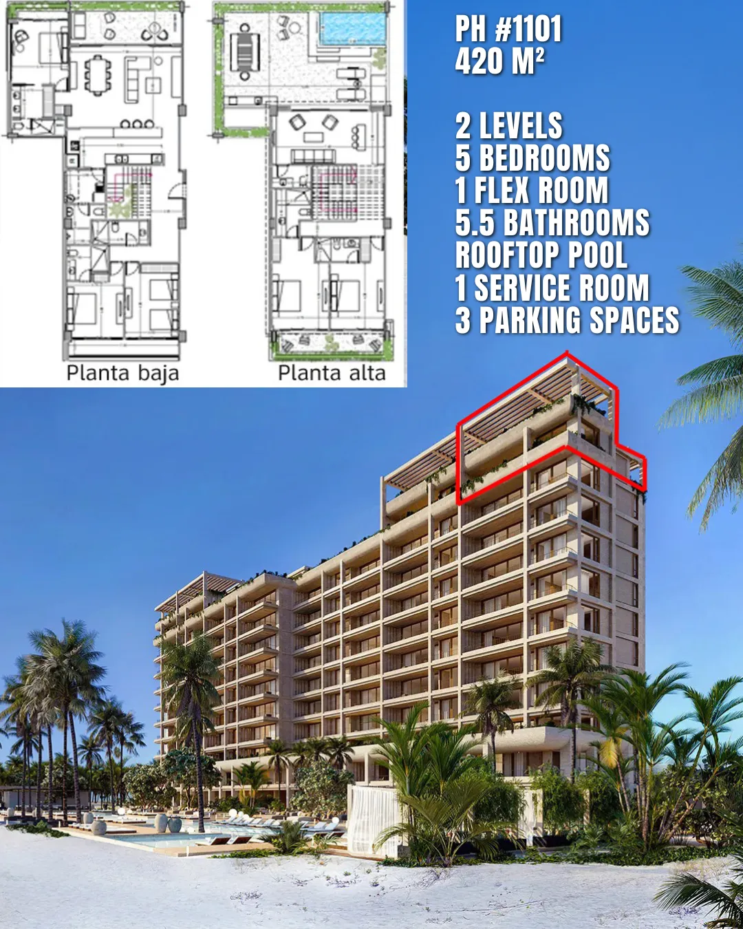 An exclusive two-level oceanfront penthouse in Telchac Puerto, designed for those who want the very best of coastal luxury, privacy, and space—without compromise